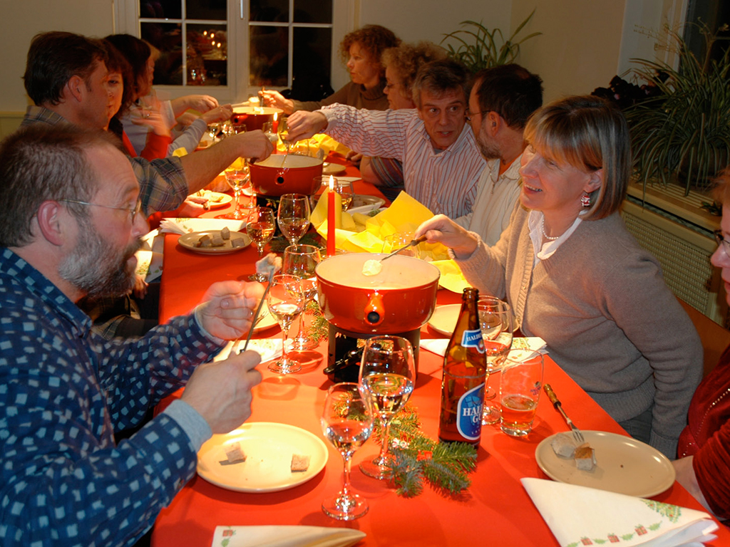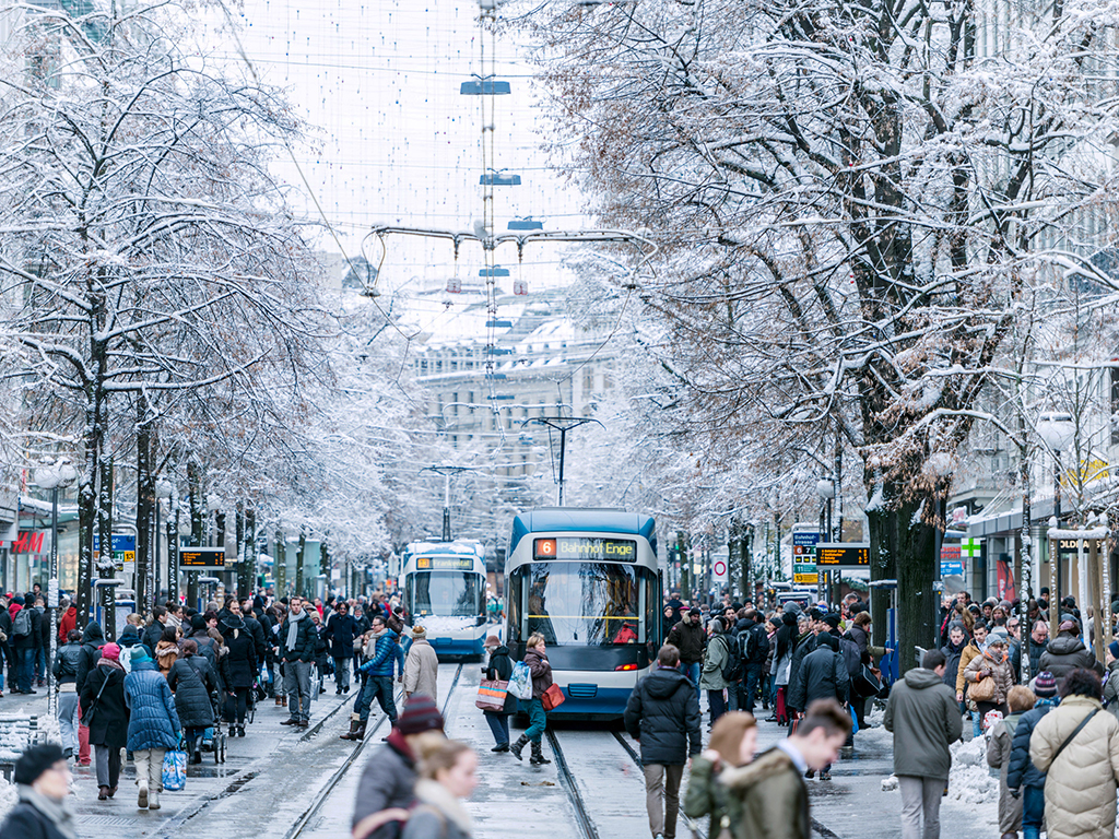 Proceed to Adliswil and take a cable car high into the forest above the town to arrive at a fantastic local restaurant. Enjoy the sweeping views of Zurich’s lake from the terrace and relish a choice of appetizers while warming-up with the freshly prepared "Glühwein", a hot and spicy wine that is very traditional during the Swiss winter. An assorted bowl of salad is followed by the delicious Swiss cheese fondue and to complete your gourmet experience a home-made chocolate cake is served. Completely satisfied, the tour makes its way back into Zurich.